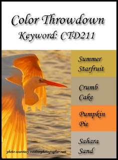 Good morning everyone!!! It's Wednesday again and time for another Color Throwdown Challenge! The wonderful Wanda is our hostess and she has picked a gorgeous color combo for us this week!!!! Aren't these colors perfect for a fall card??? Remember, you don't have to use the exact colors...use what you have that comes close...we want everyone to have a chance to play!!!